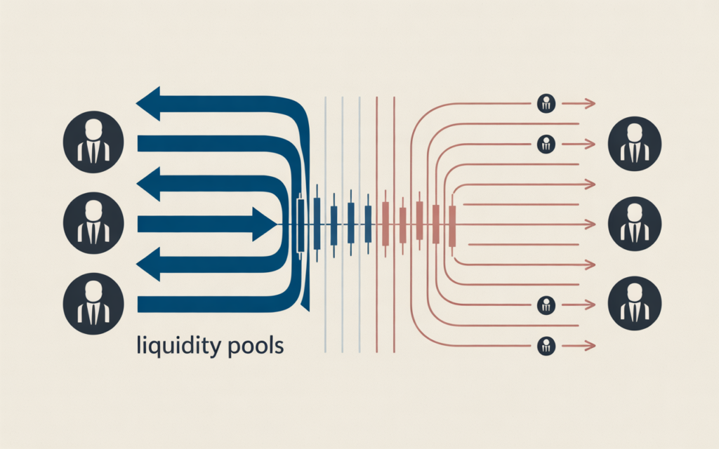 Smart money moves price towards liquidity to fill large orders.